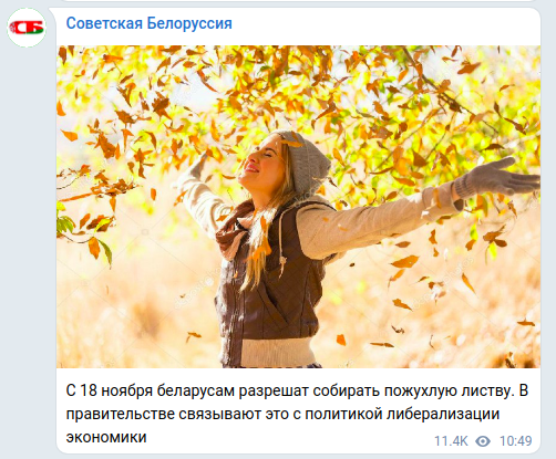 4) «Шутник» эксплуатирует бренд оригинального СМИ, пародируя его и публикуя сатиру. Например, канал t.me/sovbelorussia отсылает к изданию «СБ. Беларусь сегодня».