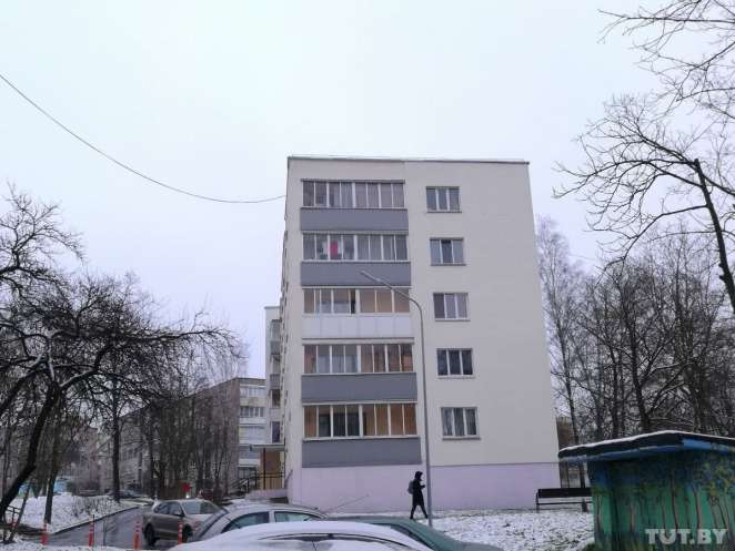 Так балкон с белыми и красными майками выглядит снаружи. Фото: читатель TUT.BY