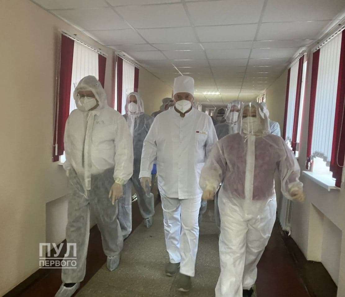 Александр Лукашенко во вторник отправился рейдом в Столбцовскую районную больницу, чтобы ознакомиться с оказанием помощи больным коронавирусом. Никого уже не удивило, что, зайдя в помещение больницы, белорусский правитель не удосужился надеть респиратор (на тот момент он был у него на бороде, уже позже, пойдя по палатам – был поднят правильно) и вообще не облачился в бахилы. Зато многих удивила обстановка вокруг Александра Григорьевича.