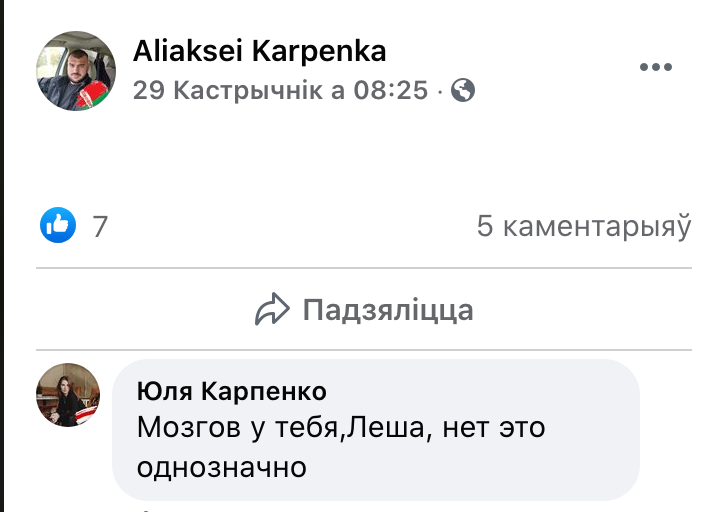 «Наша Нива» пыталась получить комментарий в семье Карпенко об их семейном конфликте. Ни Алексей, ни его отец не ответили на звонки. А после появления в соцсетях сообщений о ситуации Алексей вообще удалил свои страницы в фейсбуке и инстаграме.