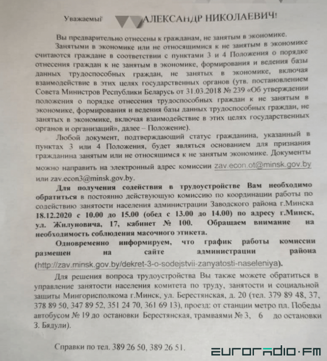 «Это что ещё такое?» Чиновники снова рассылают белорусам письма о «тунеядстве»
