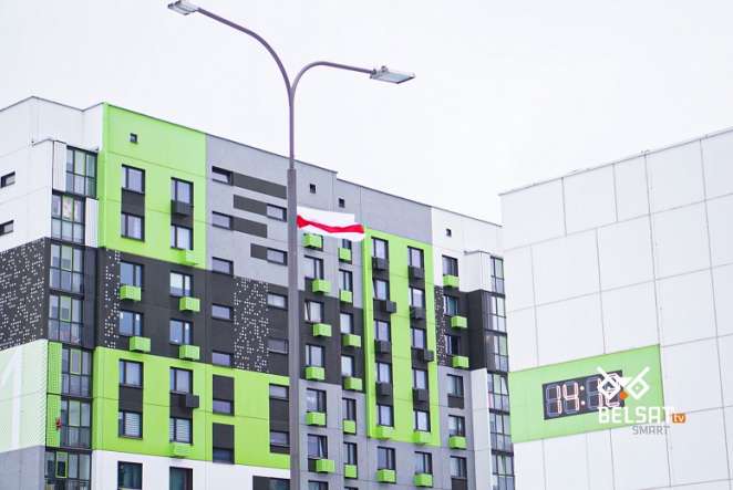 Заметить протестную активность в квартале нетрудно. Кроме ленточек и флага есть красные банты, которыми украсили столбики у газона. Их тоже срезали неизвестные, но люди восстановили. В окнах висят несколько бело-красно-белых флагов. За них теперь легко получить сутки.