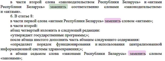 «…в части второй слова «законодательством Республики Беларусь» и «актами Республики Беларусь» заменить соответственно словами «законодательством» и «актами»...»