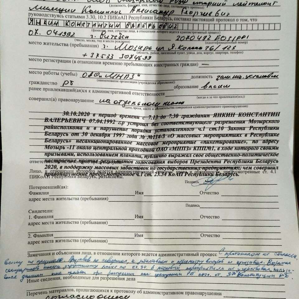Парня, который меня вез, оштрафовали за отсутствие техосмотра. А я оказался в отделении милиции на шесть часов. Хотели оформить протокол за фото у здания завода с плакатами в октябре, но срок по этому «правонарушению» вышел.