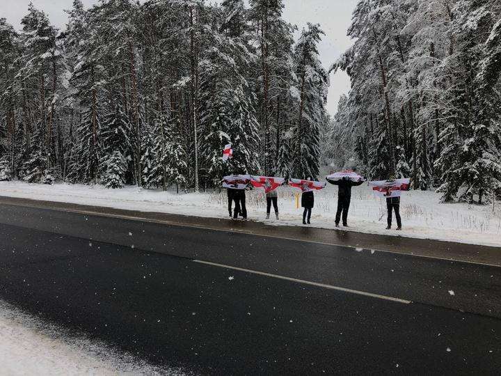 Снеговики в Поставах с флагами БЧБ и Хабаровского края, где протестовать начали еще летом.
