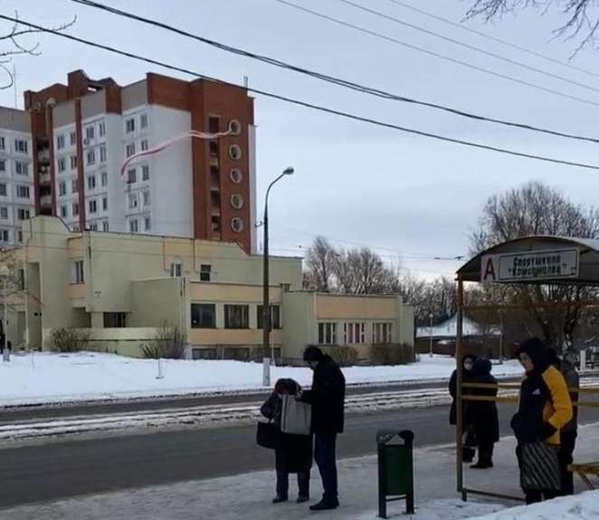 В Витебске кто-то вывесил из окна большой БЧБ-флаг.