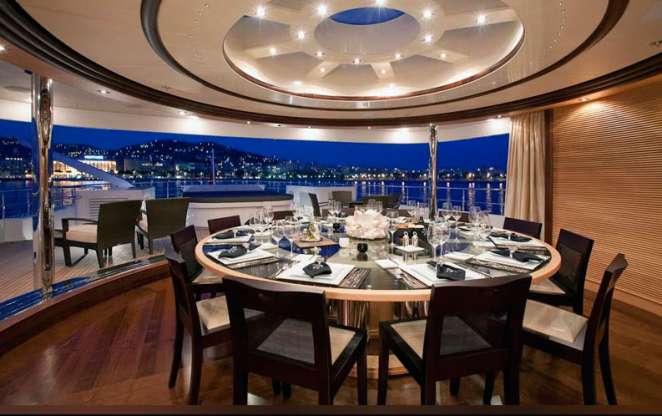 По информации сайта CharterWorld, на судне шесть кают на 12 гостей, а также хозяйская каюта на нижней палубе с кроватью king size. Из хозяйской каюты — прямой доступ в кабинет с 42-дюймовым телевизором и баром. Также здесь есть бассейн с гидромассажем, тренажерный зал и барбекю.