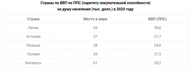 Обратимся к цифрам, ни на минуту на забывая при этом, что они подготовлены Международным валютным фондом. Вглядитесь в таблицу. Из нее следует, что Литва по ВВП (ППС) на душу населения почти в два раза обогнала Синеокую. Но кто, находясь в здравом уме и твердой памяти примет близко к сердцу информацию, подготовленную конторой Рокфеллеров и Ротшильдов?