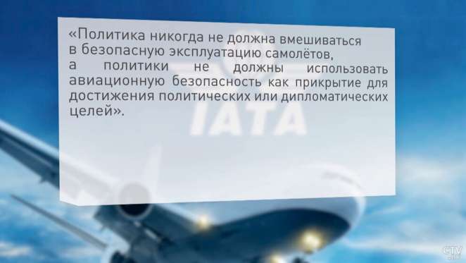 Всё это действительно можно найти на официальном сайте IATA. По мнению ассоциации, авиабезопасность не должна политизироваться. Однако в пресс-релизе говорится и то, что в связи с инцидентом рейса Ryanair «IATA осудила действия правительства Беларуси и призвала к независимому расследованию». Но об этом СТВ промолчал.