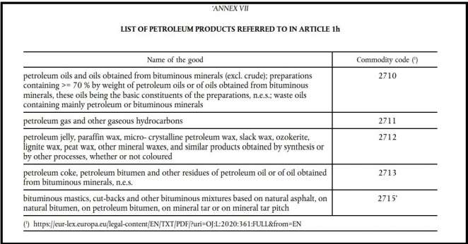 Кроме непосредственно нефтепродуктов (код ТН ВЭД 2710), белорусский нефтяной экспорт представлен нефтяными газами (271129), вазелинами/парафинами/восками (2712), нефтяным коксом и битумом (2713), асфальтом и битумом (2715).