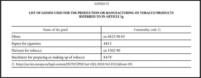 И здесь Евросоюз вводит санкции по всему спектру табачного производства, а именно на экспорт в Беларусь: