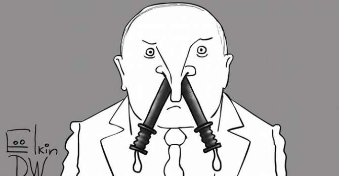 Карикатура Сергея Елкина: Лукашенко с дубинками вместо усов