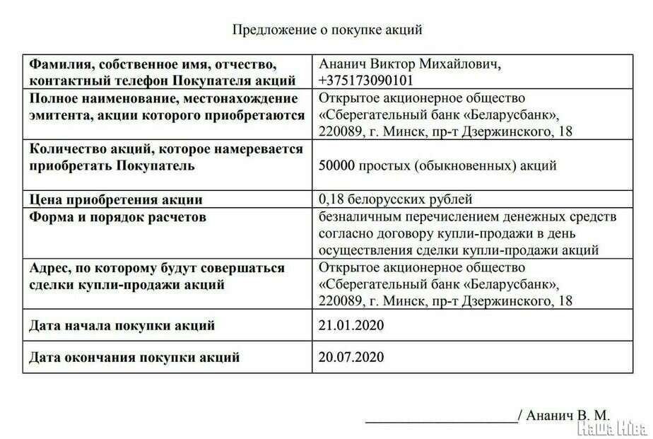 И вот, например, председатель правления банка Виктор Ананич выразил намерение купить 50 000 простых акций в 2020 году.