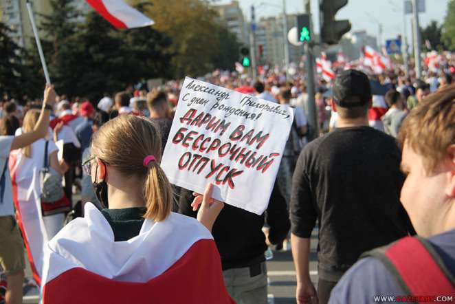 Год назад в Беларуси прошел третий воскресный марш. В Минске его участники поздравили Лукашенко с днем рождения. Марш закончился стычками с силовиками и хапуном.
