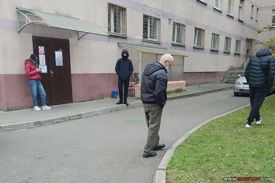 В 40 поликлинике недалеко от рынка Ждановичи ситуация совершенно другая. Тут, как положено, на входе сидит в «ковидном» костюме дежурный с термометром и контролирует, чтобы пациенты с температурой шли отдельно, через так называемый «красный» вход позади поликлиники.