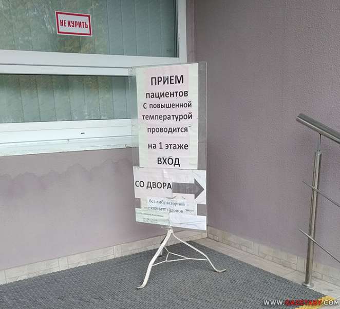 К боковому закутку, куда стрелочками перенаправляют температурящих пациентов, нужно пробираться сквозь импровизированную курилку.