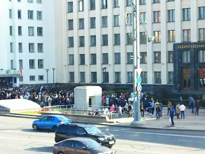 «Где-то в 13.10 в аудиторию зашел охранник, сказал, всем собираться и выходить, есть угроза подрыва здания. После через 10 минут подъехала машина милиции, вышли сотрудники в обычной форме, за ними двое в шлемах и бронежилетах», — описывают ситуацию на физфаке БГУ.