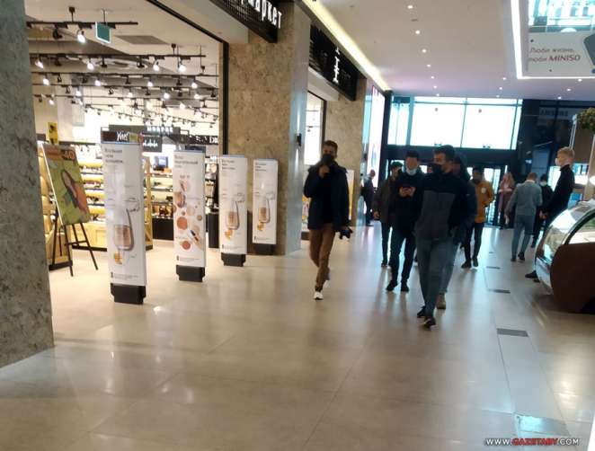 В торговом центре на проспекте Победителей продолжают крутить «старое» обращение от имени Минздрава с рекомендациями соблюдать масочный режим. Большинство покупателей, впрочем, воспринимает эти слова как шумовой фон, и если группки китайских студентов, все как один, в масках, то в компаниях, напоминающих ближневосточных мигрантов, большинство лишь обозначает присутствие маски на лице.