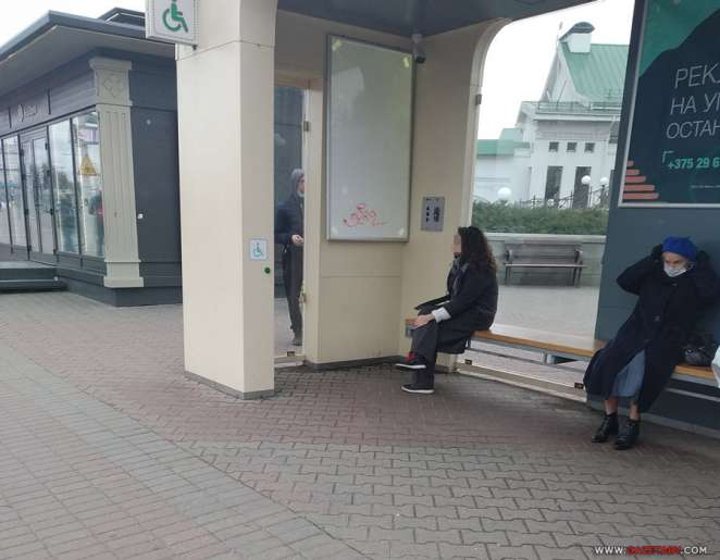 Ну, а с общественным транспортом – как повезет. Кто-то и в метро упорно игнорирует предупредительные плакаты про обязательный масочный режим, кто-то и на остановке автобуса стоит в маске – как перешучиваются между собой несколько женщин, «заодно и от ветра нос спрятан».