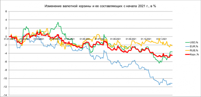 При этом валютная корзина, после недели снижения на позапрошлой пятидневке, выросла на минувшей неделе к белорусскому рублю на 0,49%. А это можно оценивать как умеренное снижение белорусского рубля. И можно сделать предположение, что белорусские предприятия, по крайней мере на прошедшей неделе, перешли к покупке валюты на чистой основе.