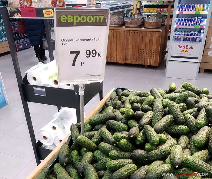 Белорусские овощи здесь тоже есть, но вот цена их вовсе не радует: огурцы – 8 рублей, почти вдвое дороже перуанских гранатов.