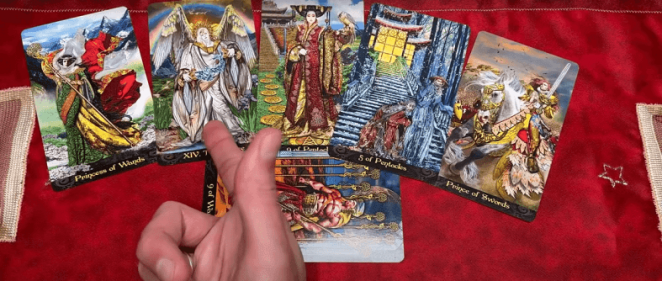 "Высшие силы начнут вмешиваться, потому что люди уже не в состоянии что-то решать. […] Итоговая карта — девятка жезлов, то есть отстаивание своих позиций. В любом случае, будет у вас желание или нет, будут ли силы, но вам придётся это делать, иначе у вас всё отберут", — говорит он.
