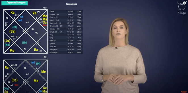 "Мы находимся в середине периода Меркурия. Что он нам обещает? Он, в принципе, стоит в хороших комбинациях, в седьмом доме. Это говорит нам о том, что войны не будет. Но Меркурий проигрывает в планетной войне: он находится очень близко к другим планетам. Это значит, что все те объединения, которые могут быть до 2024 года, — это будут формальные, но не реальные действия", — говорит Татьяна, упоминая отдельно Союзное государство.