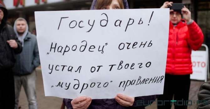 Плакат на протесте против “декрета о дармоедах” / Еврорадио