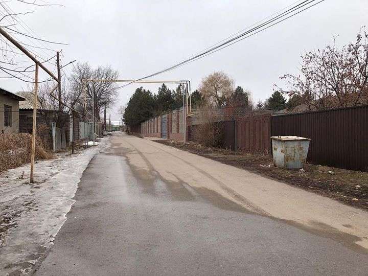 Мы отправились на соседнюю улицу, где проживает сестра Елбасы Анипа. Точно такой же глухой серый забор и сосны. Вокруг тишина. Ни охраны. Ни людей.