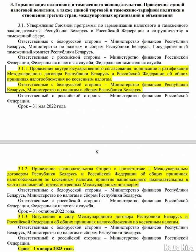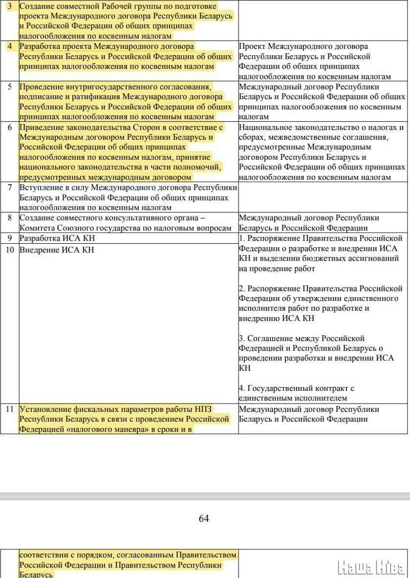 На первый взгляд, этот механизм и закреплен в соответствующей программе под формулировками «согласование и подписание международного договора о принципах взимания косвенных налогов» вместе с «установлением фискальных параметров работы белорусских НПЗ в связи с проведением РФ налогового маневра».