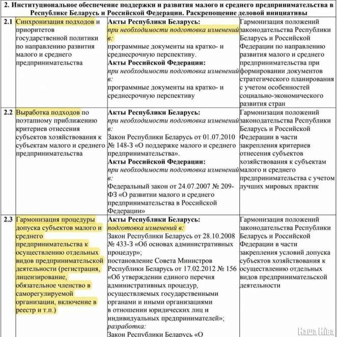 «Все приведенные союзные программы я разделил бы на две группы, — продолжает экономист. — Первая — 25 программ из 28, где доминирует риторика гармонизации законодательства, совместных пилотных проектов, а также планируются отдельные организационно-технические мероприятия.