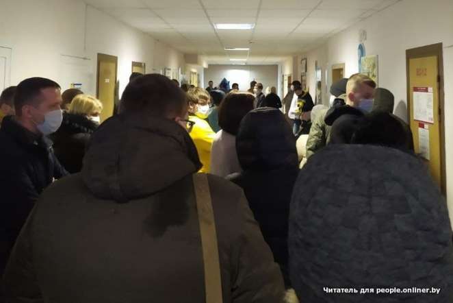 Началось все затемно. На записи в Facebook видно, как очередь располагается по этажам 40-й поликлиники Минска. Она выходит на улицу и теряется в сумраке. Похожая обстановка и у 37-й столичной поликлиники.