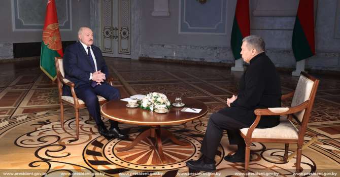 «Украина никогда с нами не будет воевать: эта война продлится максимум три-четыре дня. Там некому будет против нас воевать, — цитирует фрагменты интервью белорусское государственное агентство БелТА. — Те, кого там показывают с этими деревянными автоматами, как они тренируются… Так мы сейчас выйдем с тобой в соседний зал, снимем на мобильный телефон тренировку эту и покажем, — сказал Александр Лукашенко. - И как только чуть-чуть запахло, Володя Зеленский сразу трухнул».