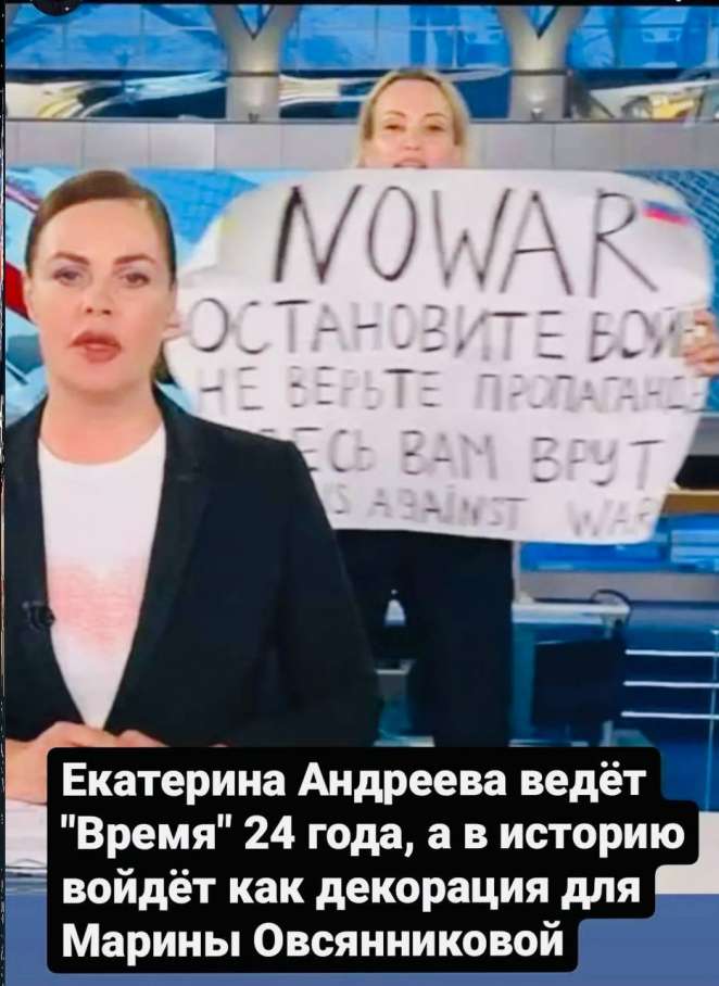 «Вот ты сидишь в полном упадке, настроение просто на дне. Как жить дальше не понимает вообще никто. Умирают люди, экономика летит к чертям, все реально страдают от происходящего. Коронавирус, который объединил мир, все уже забыли. И тут выходит Марина Овсянникова в прямой эфир на главном канале страны. Не уверен, что глобально на что-то повлияет, но дарит надежду и попадает в учебники», – отмечает Страдающее Средневековье (Рунет).
