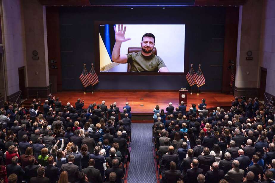 Конгресс США стоя приветствует президента Зеленского. 16 марта. Фота: J. Scott Applewhite, AP
