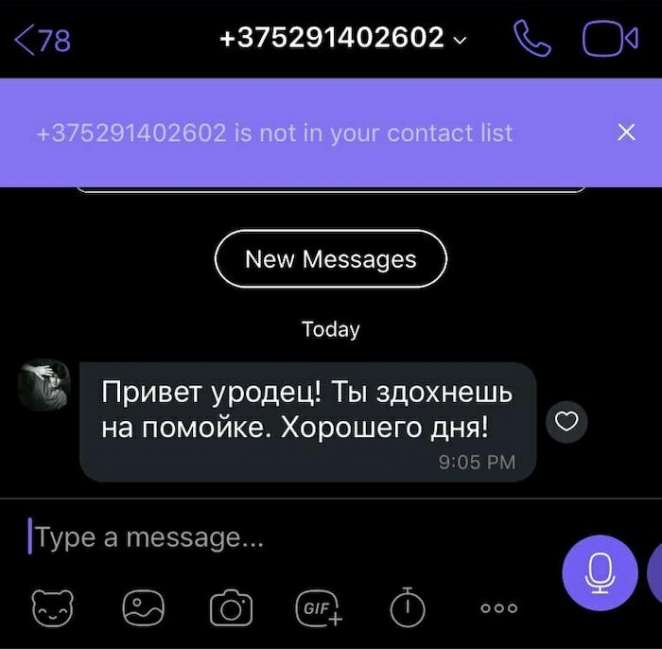 «Я менял сим-карту в телефоне уже здесь, в Польше. Возможно, вайбер автоматом прислал сообщение об этом моим контактам. И вдруг мне приходит такое: «Привет уродец! Ты сдохнешь на помойке. Хорошего дня!»
