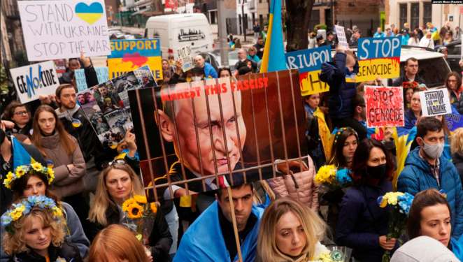 «Остановить геноцид украинцев» – протесты на Таймс-сквер в Нью-Йорке, 9 апреля 2022 года