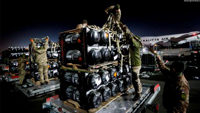 Американские противотанковые ракеты Javelin, доставленные в Киев. 10 февраля 2022 года