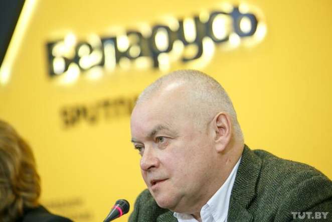 Пресс-конференция российского ведущего Дмитрия Киселева 7 апреля 2016 года в Минске по случаю открытия пресс-центра мультимедийного проекта «Sputnik Беларусь».