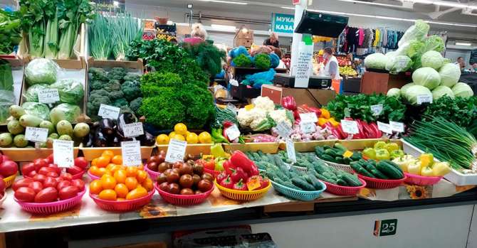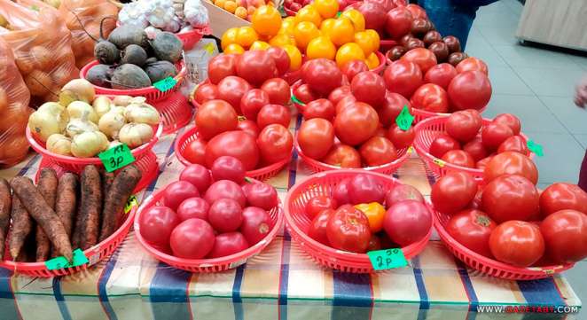 Помидоры — красные, малиновые, желтые, черные — от 2,5 до 6,5 рублей. Подешевела и зелень — укроп и пзеленый лук можно найти от 70 копеек за 100 грамм, а также кабачки — от 1,5 рублей кило.