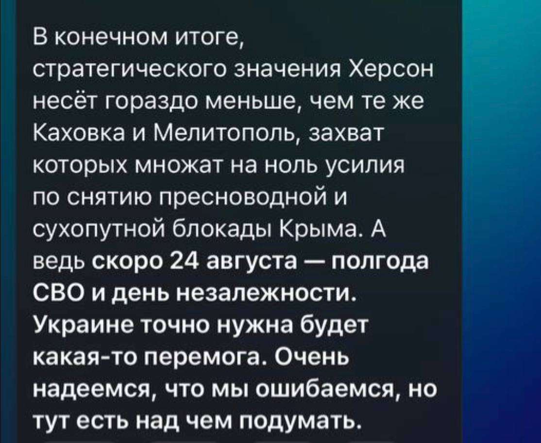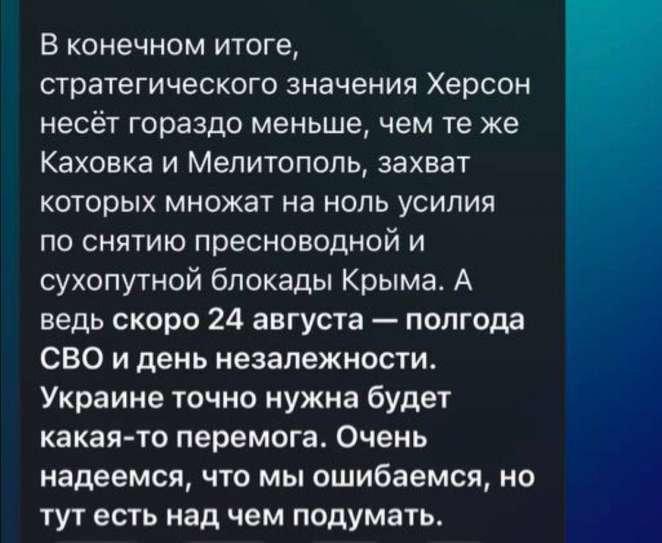 Кремлевская «Ридовка» почти дословно повторяет «тайную» методичку о «сдаче Херсона», пишет телеграм-канал СYNIC.