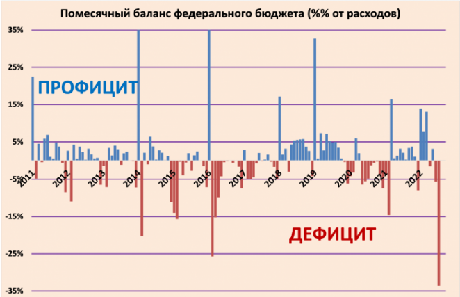 Сколько составляет дефицит или профицит от расходов российского бюджета по месяцам / Сергей Алексашенко
