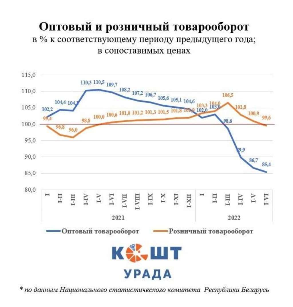 Пока что розница падает не так стремительно, как опт. Она частично удерживается истощающимися складскими запасами, наверняка на показатели повлияли и сезонные продукты, выращенные в Беларуси в этом году, которые уже появились на полках магазинов. Но всего этого хватит, лишь чтобы немного оттянуть неизбежное. Розница будет продолжать падать, причем все быстрее и в самое ближайшее время.