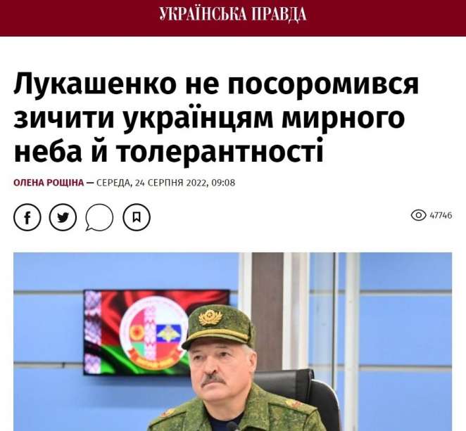 «Лукашенко не постыдился пожелать украинцам мирного неба и толерантности», — с таким заголовком опубликовала новость о поздравлении «Украинская правда».