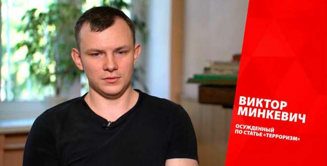 Далее дают слово Виталию Минкевичу, которому присудили 15 лет тюрьмы (пропагандисты решили не уточнять имя и в видео подписали его «Виктором»). Он рассказывает, что акции не проходили идеально и всегда были недостатки, поэтому он скорее недоволен их ходом.
