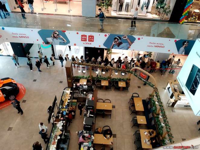 Проходящая к выходу из торгового центра пожилая семейная пара в удивлении останавливается, рассматривая очередь. Мужчина вслух недоумевает, мол, парой этажей выше «такие же точки пустые, а тут собрались, как будто страшный дефицит».