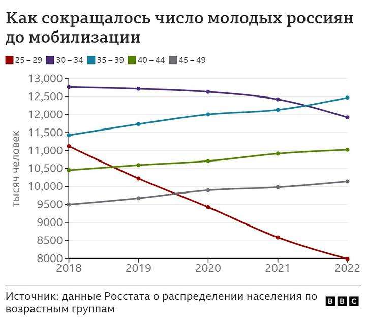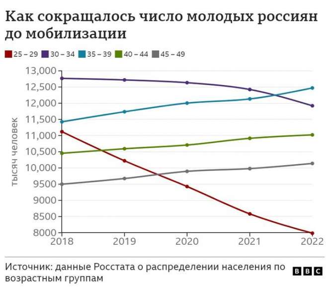 Мобилизация в объявленном виде затронет порядка 1% мужчин в возрасте от 20 до 55 лет и 0,5% рабочей силы, говорит Би-би-си экономист Bloomberg Александр Исаков. Именно эти возрастные группы максимально включены в экономическую жизнь — в ней участвуют порядка 95% молодых мужчин, отмечает он.