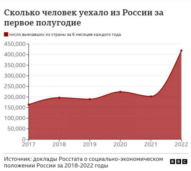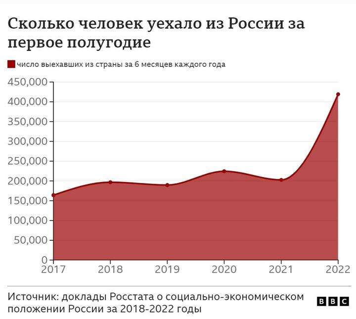 Россия столкнулась с оттоком кадров еще полгода назад, после начала полномасштабной войны. По данным Росстата, за первое полугодие 2022 г. уехало 419 тысяч человек — вдвое больше, чем в 2021-м. Кто-то вернулся — статистика не позволяет это отследить, — но многие осели за границей.