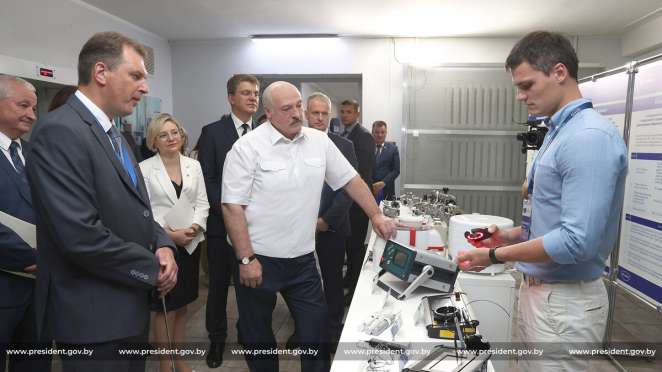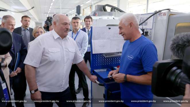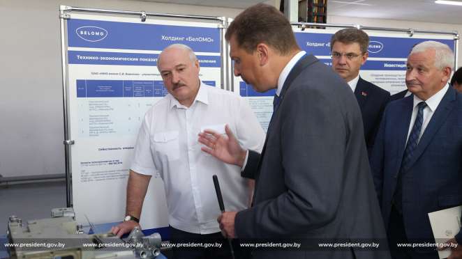 Во время последних инспекций предприятий было видно, что руководитель страны словно постоянно ищет опору. Так после посещения Минского механического завода имени С.И.Вавилова – управляющей компании холдинга «БелОМО» пресс-служба Лукашенко распространила целую серию снимков однотипного поведения политика.