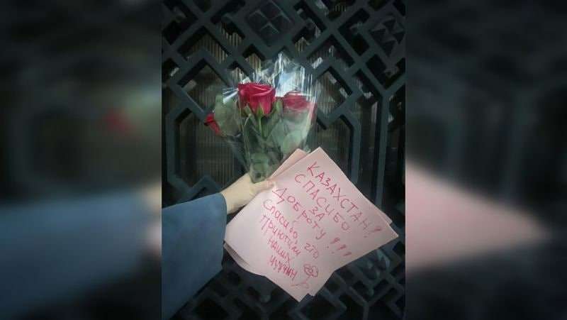 К посольствам Казахстана в Москве и Лондоне россияне несут цветы с благодарностью. Фото телеграм-чат «Уральск Релокация»